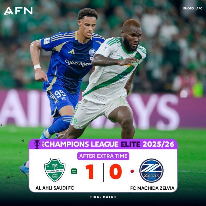 最终,十人吉达国民1-0战胜町田泽维亚,成功卫冕亚冠精英联赛冠军。