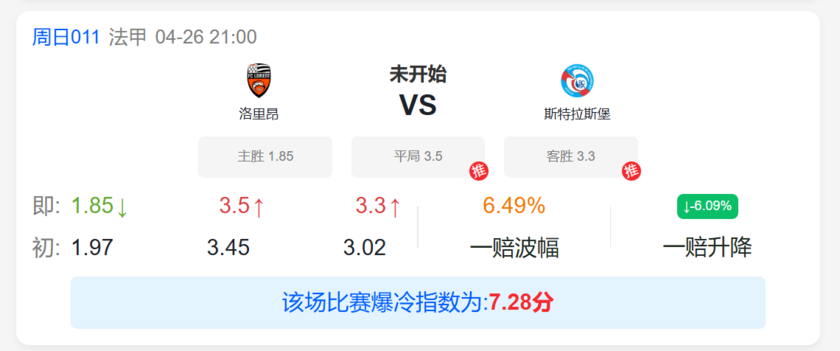 数据层面给予洛里昂一定支持,这与其过往在主场的交锋优势相符;考虑到斯特拉斯堡近期状态不佳且重心已转向欧协杯,洛里昂具备抢分契机。目前两队积分差距不大,洛里昂主场表现稳定,近期保持不败且防守稳固,而斯特拉斯堡整体实力略占上风、进攻端多点开花,客场表现尚可。但若结合双方战意来看,数据对洛里昂支持力度似乎是有点偏高调了,不妨看斯特拉斯堡能够拿分。