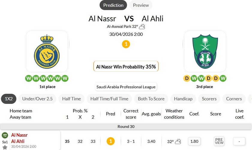 赛事:2025-2026赛季沙特联第30轮